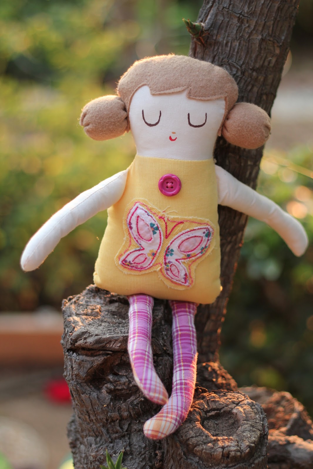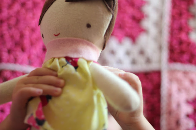 Bun and I had been reading Charlotte's Web as I made her, so she got dubbed Fern. Which I love. I'm really happy with how she turned out. Well...except for the ponytails. I think I placed them too high, so they kind of look like ears. ("Is she an elf," my mom asked?) And I apparently didn't quite construct them right as they are always flopping over. I'm thinking it might be best to cut them off all together and replace them with my beloved Princess Leia buns... But there are too many other new dolls to make before that happens.